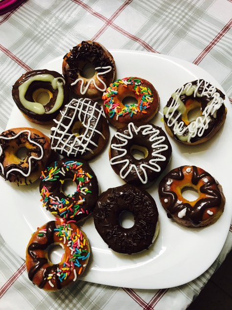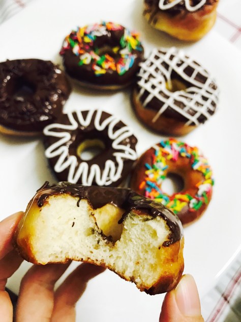 6. Roll the dough into a big one with thickness around 1 cm. Cut into shape of doughnuts.