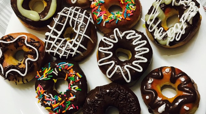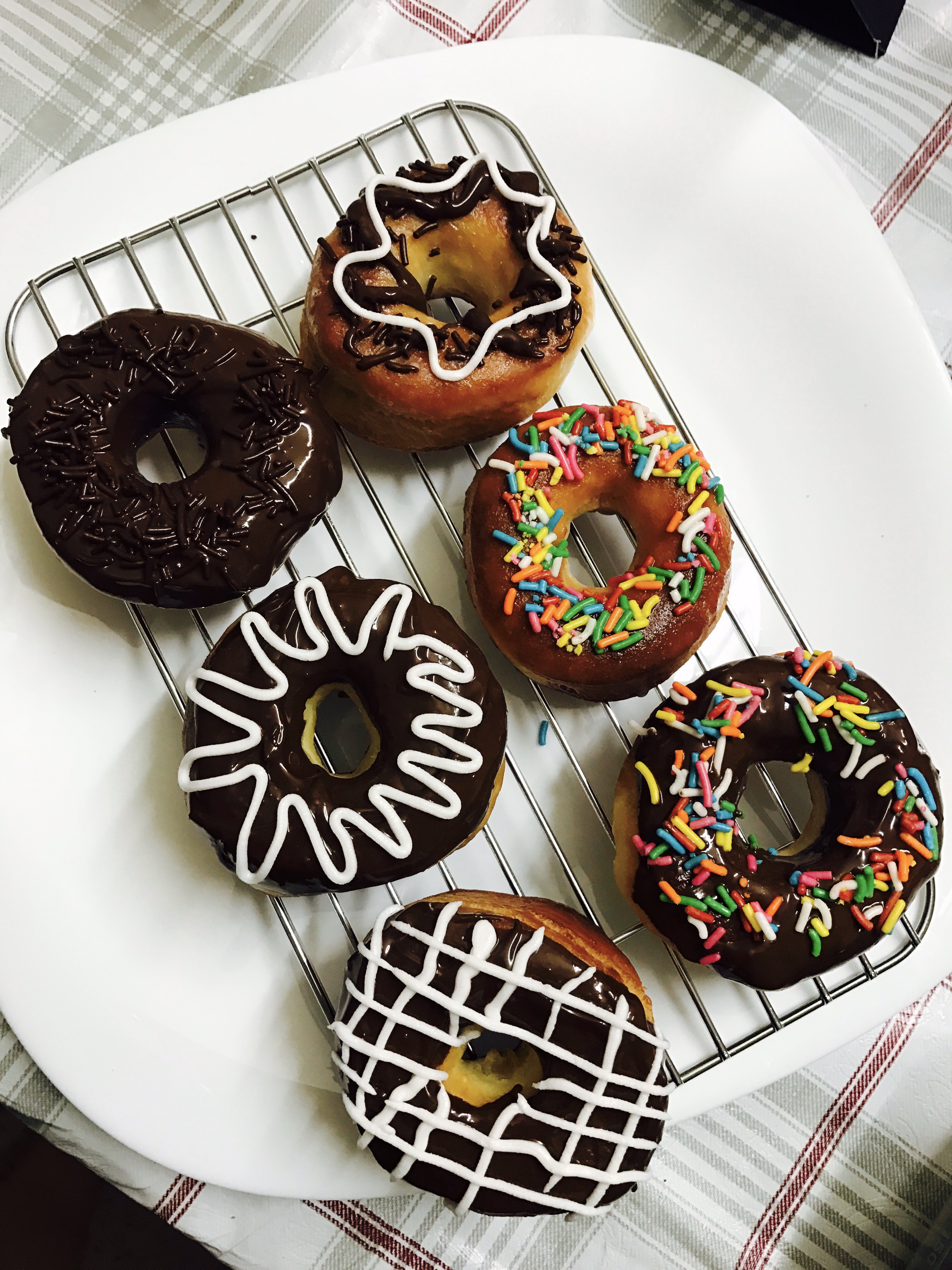 6. Roll the dough into a big one with thickness around 1 cm. Cut into shape of doughnuts.