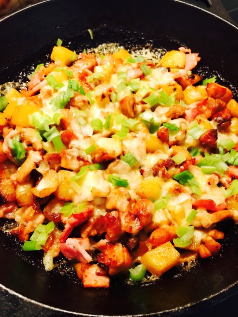 4. Sprinkle bacon pieces over chicken and potato. Bake for another 10 mins.