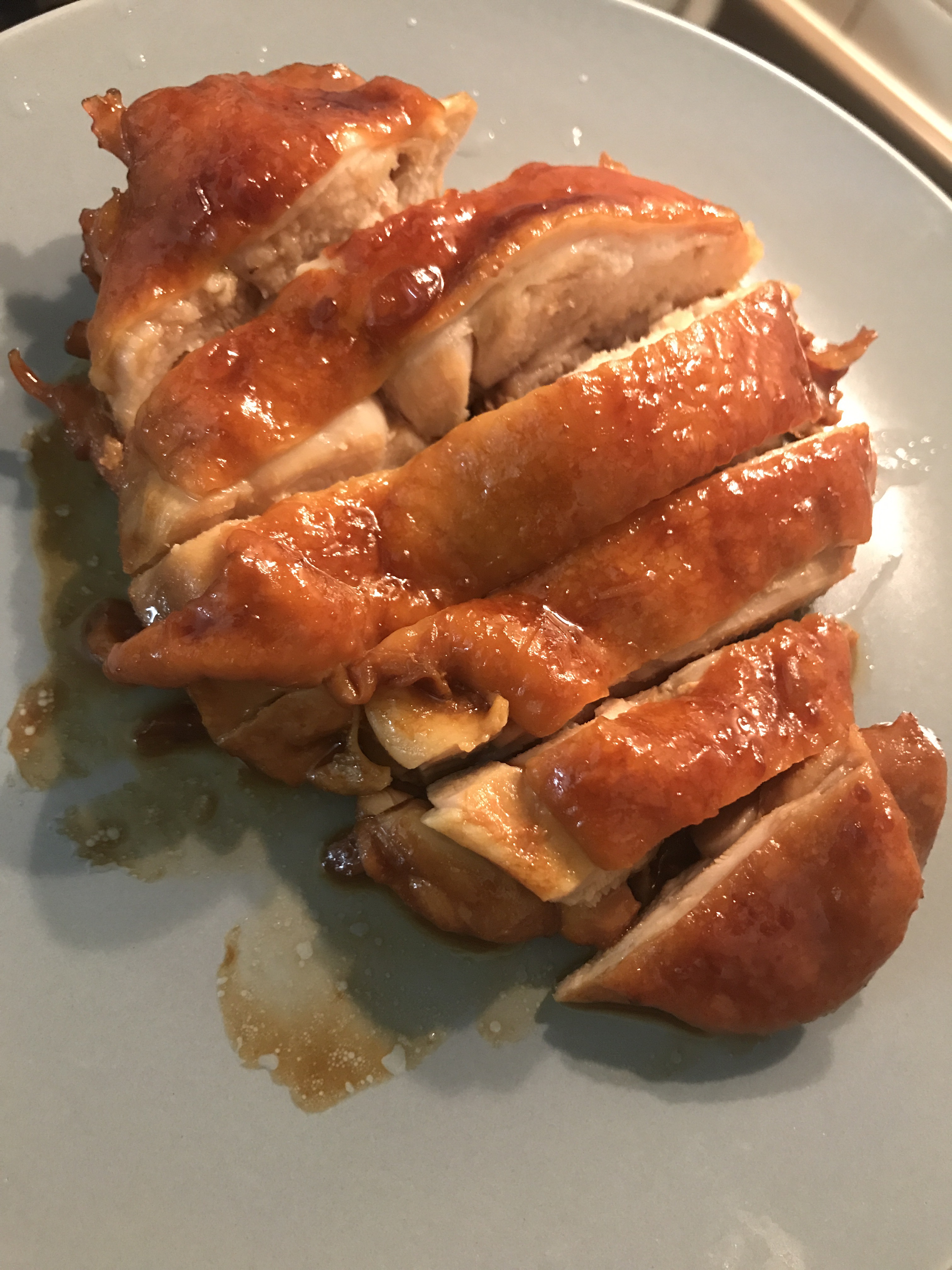 3. Cover the pan with lid. Turn to low heat. Flip the chicken occasionally.