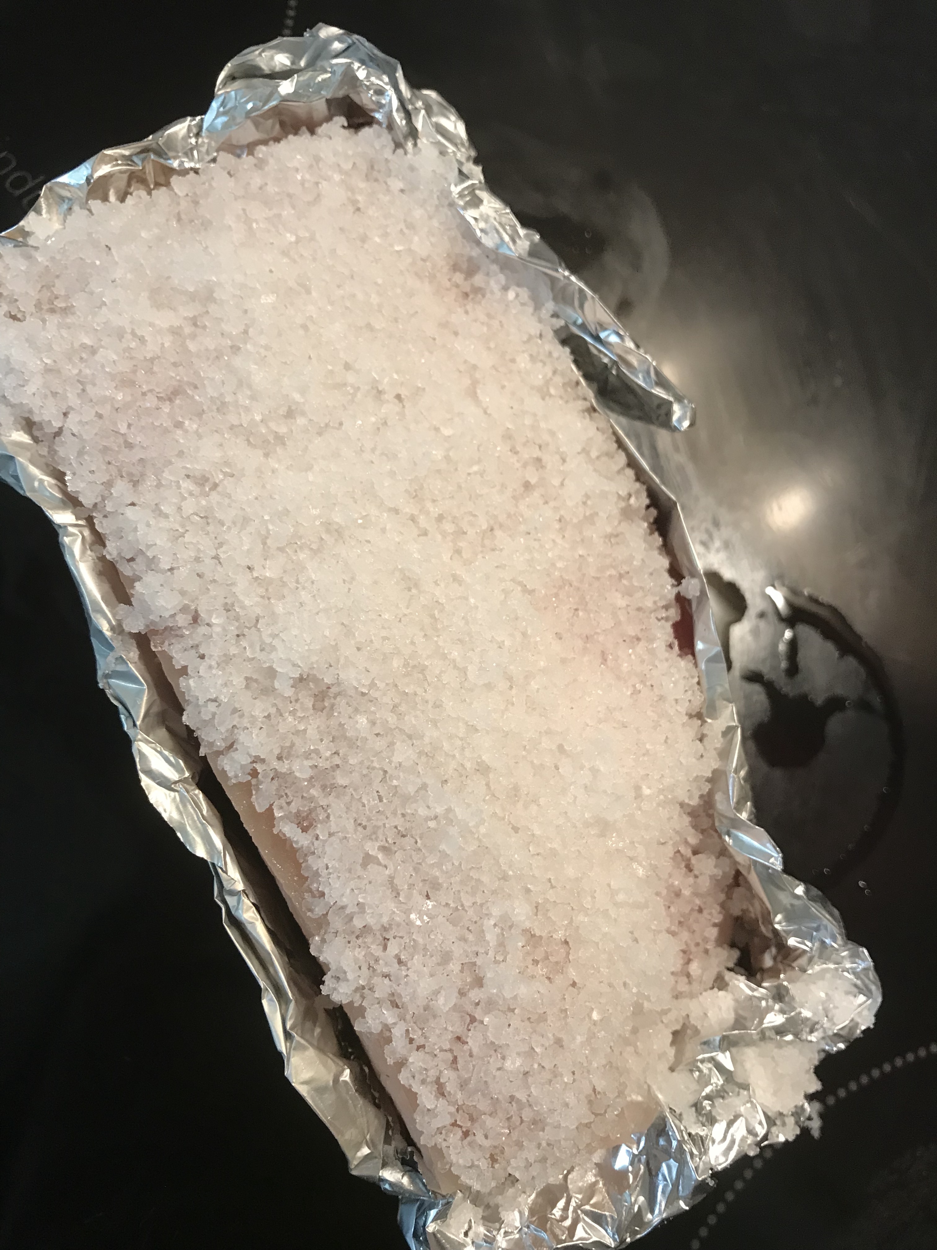 8. Sprinkle coarse salt on the surface with a thick layer.