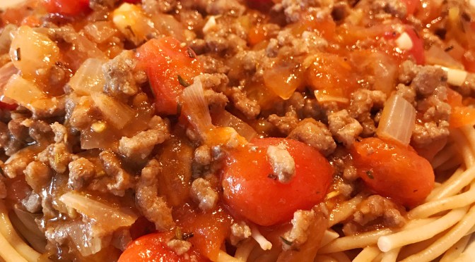 Add beef into tomato. Stir to let them mix well. Season with a little more salt and pepper if you need to.