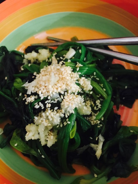 This dish is vegan. Main ingredients are Qianzhang and spinach. It’s also very simple.