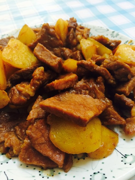 5. When water reduces to less than 1/3 and potatoes become softened. Turn to high height. Keep stir frying till sauce becomes dry.