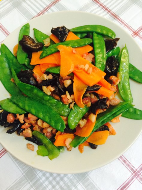 2, Soak black fungus in water for about 3 mins. Remove the stem and tear into small pieces. Blanch black fungus in hot water for 3 mins. Soak in cold water and drain.