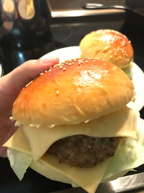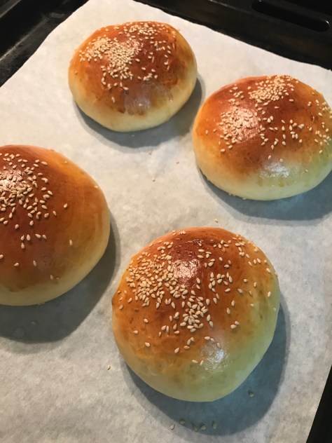 I made burgers before, but this time I tried burger bun with my white bread recipe: