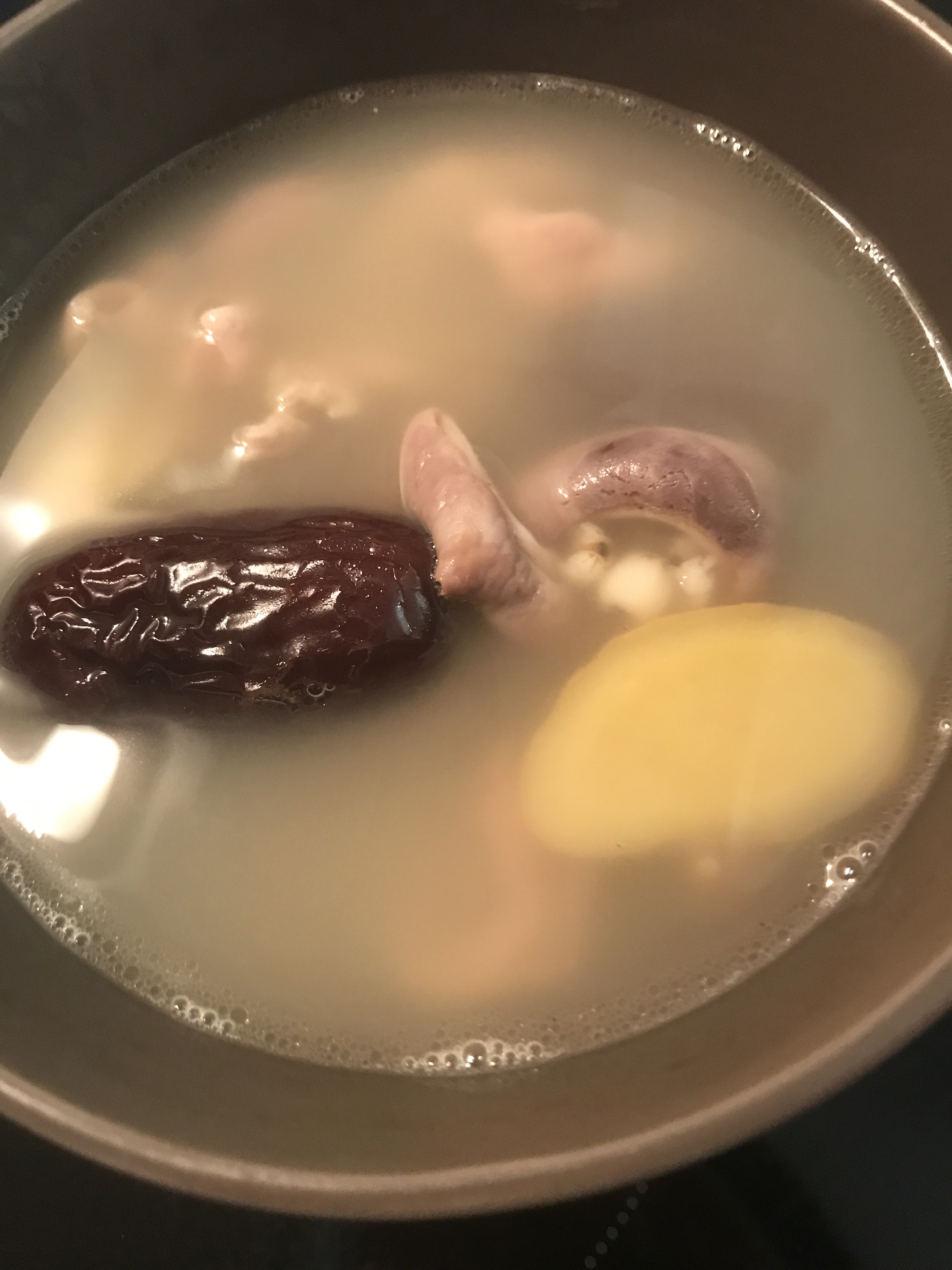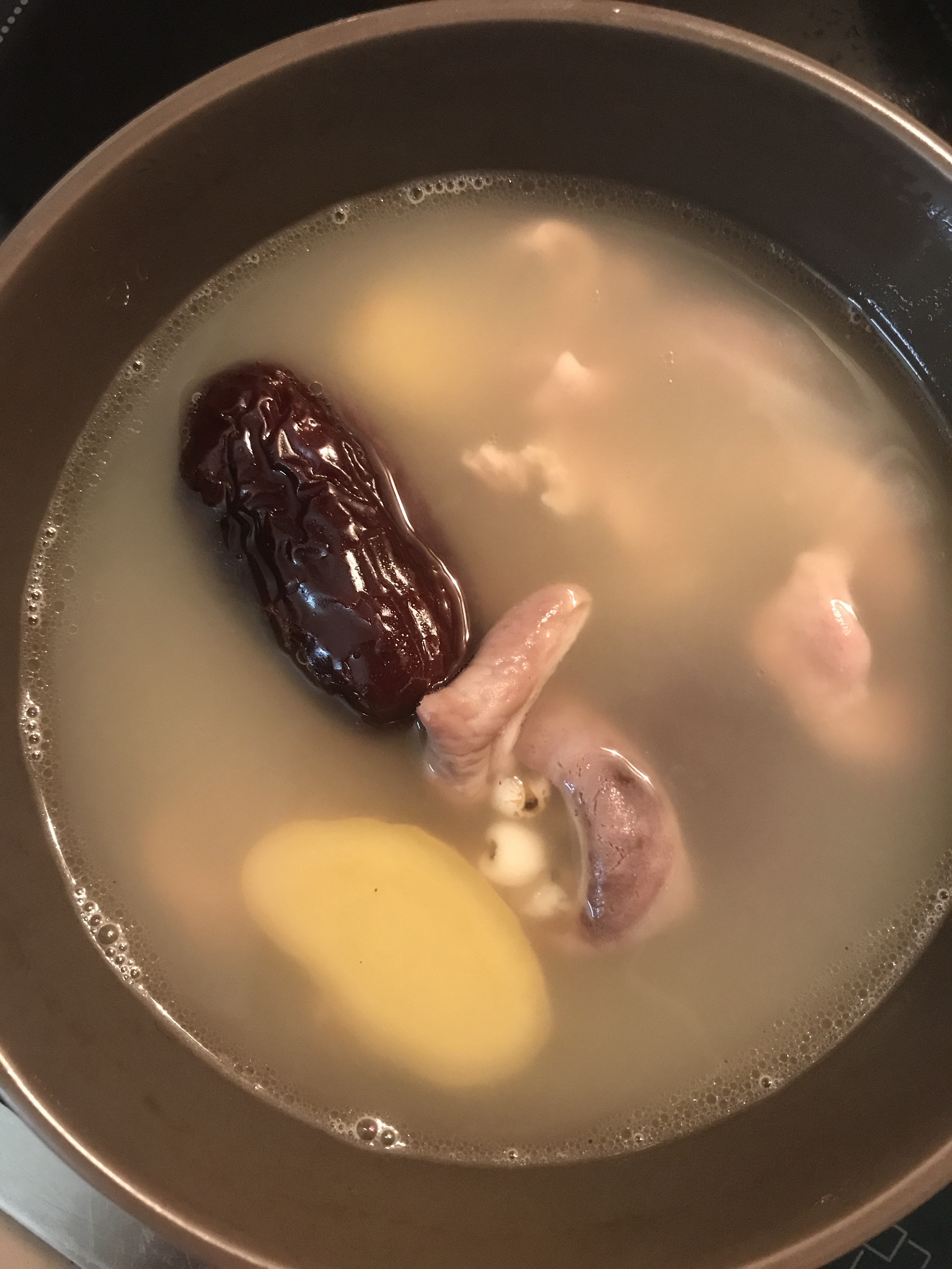 8. Roast with 170 degree C for 40 mins. Then flip chicken over and roast for 20 mins. ( after totally roasted 60 mins, I found the chicken’s color is still a little light, so I roast it for another 20 mins, with the breast side up. And I also took all the apple chunks out.)