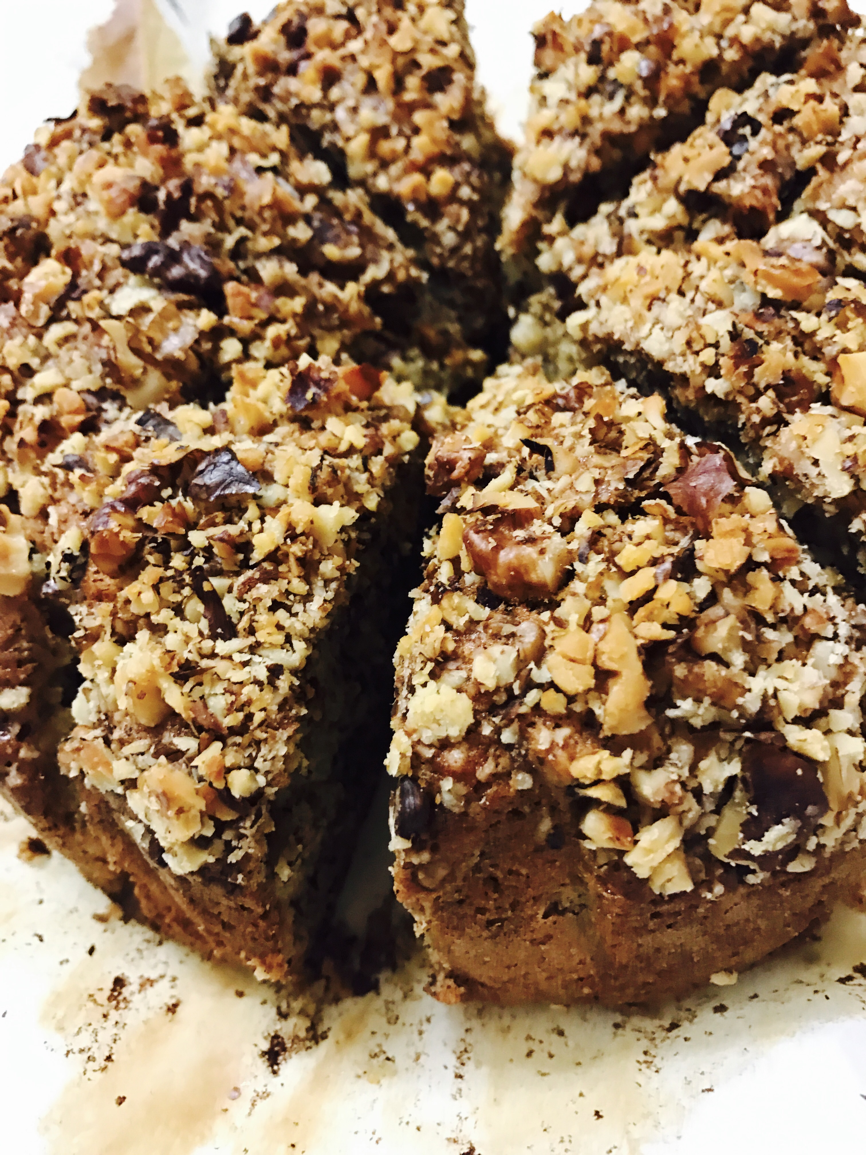 Make frosting into 2 part. Add 1/4 walnut into one of them.