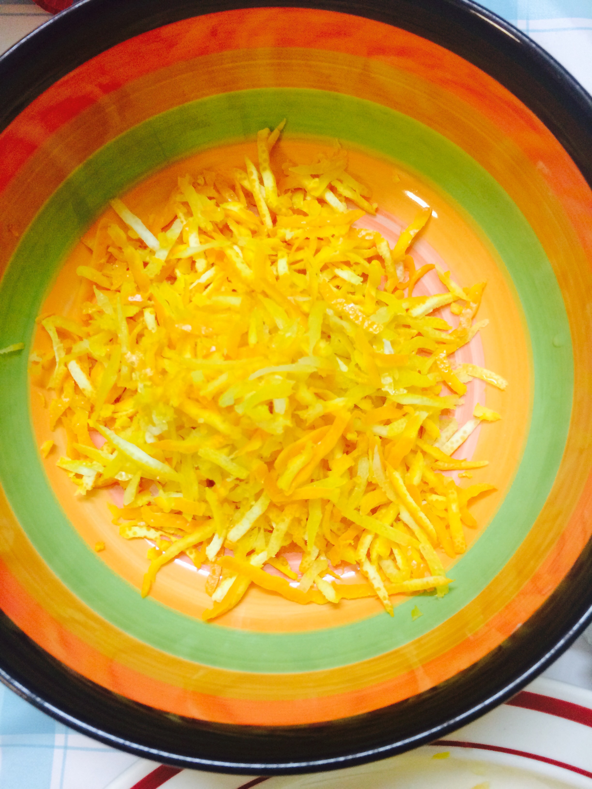 - Pour the orange egg mixture into a big bowl. Add in vanilla. Mix well.