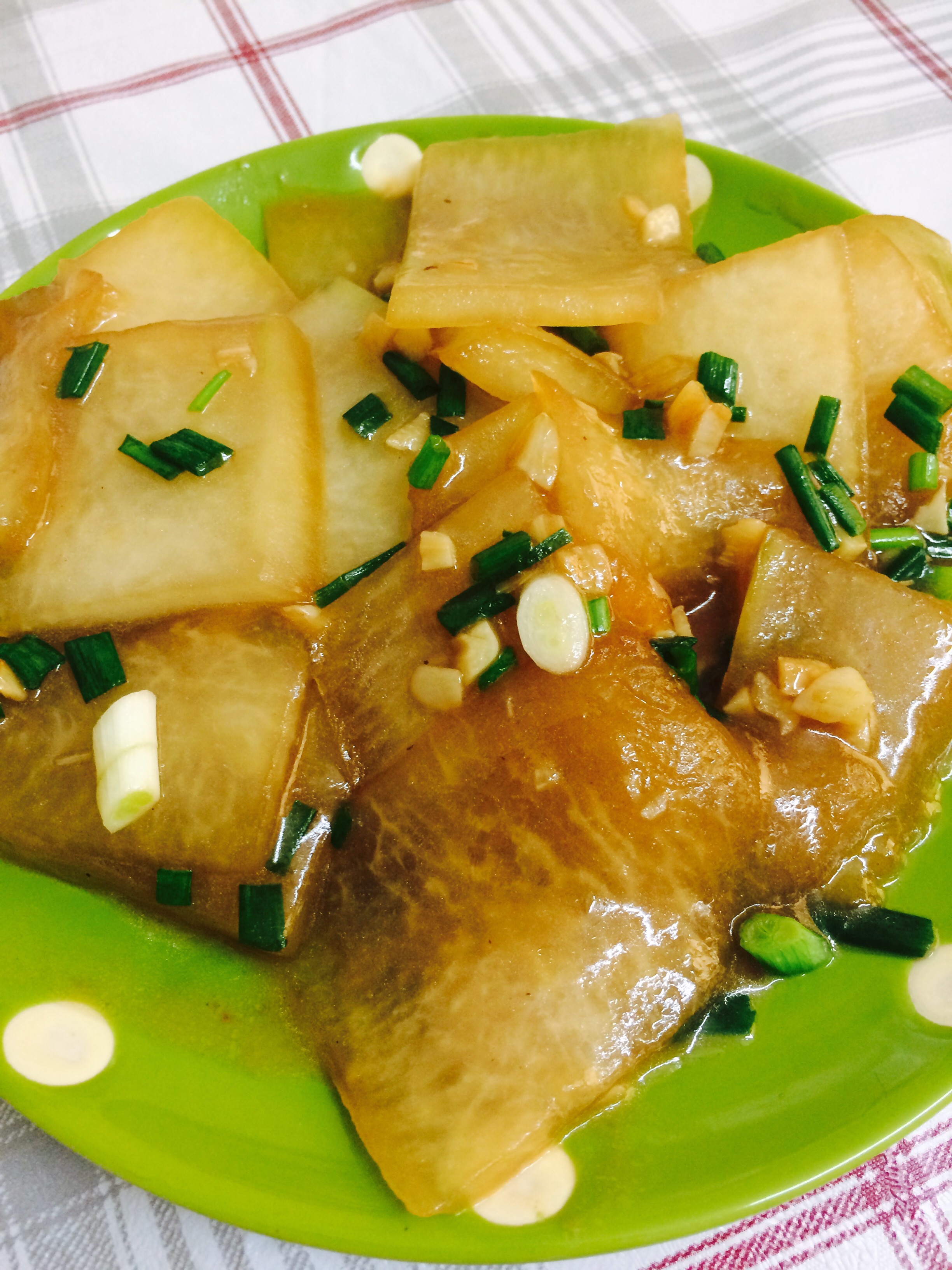 3. Add in white gourd slices. Stir fry for a minute or two.