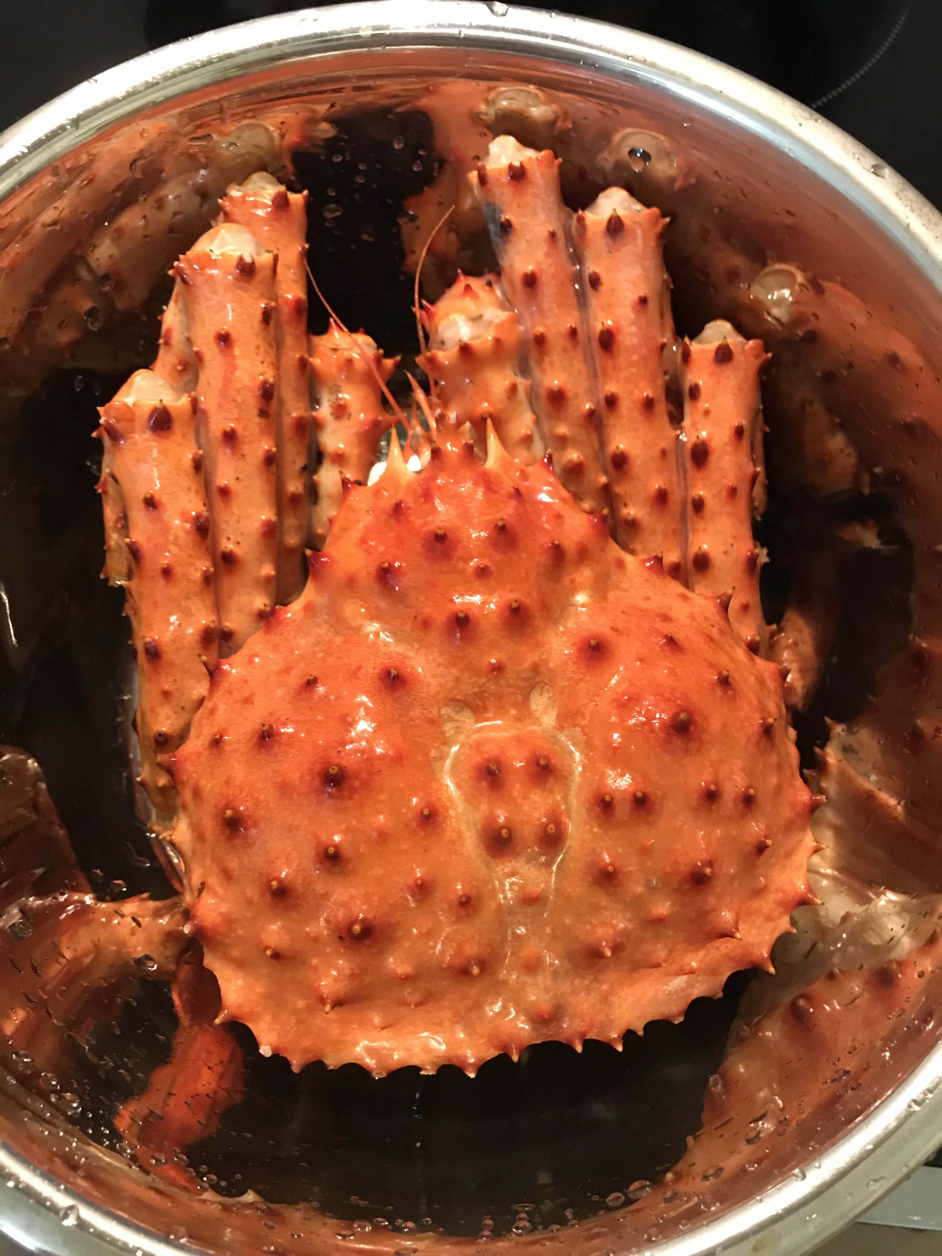 Today when I got up, the first thing I needed to do is to defreeze the king crab we bought. Then I disassembled it into several parts.