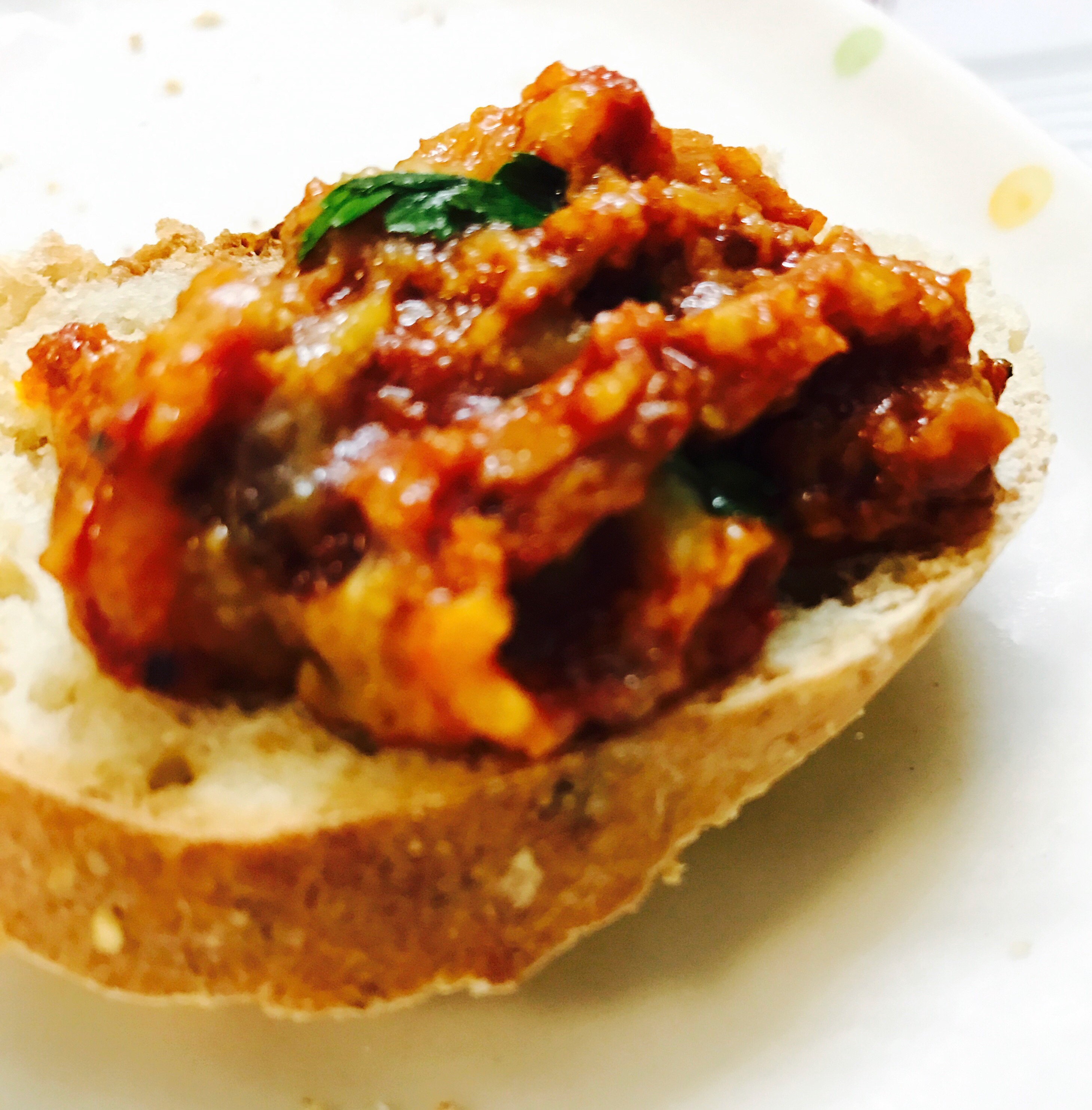 2. Heat a little oil in the pan. Preheat oven to 190 degree C. Put chopped Mushroom stem mixture into pan. Stir fry till aromatic. Add in a little salt and mixed herbs. Set aside.