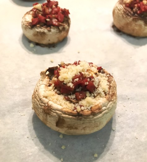 1. Remove Mushroom’ s stem. Don’t throw away. Chop them. Also prepare chopped garlic, and bacon ( or sausage).