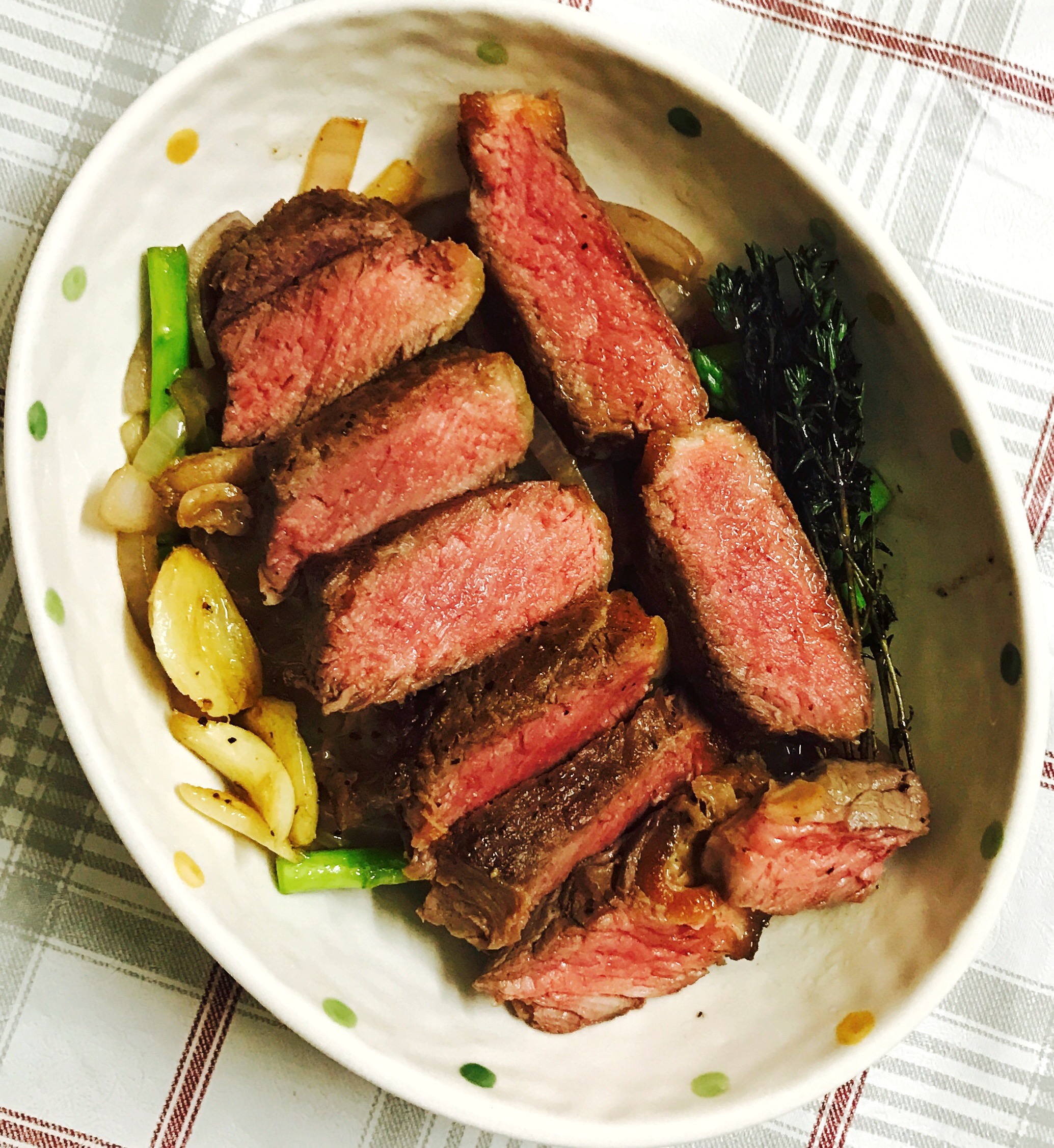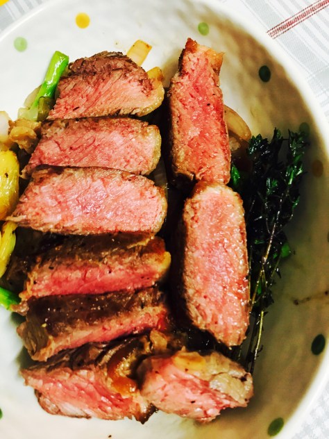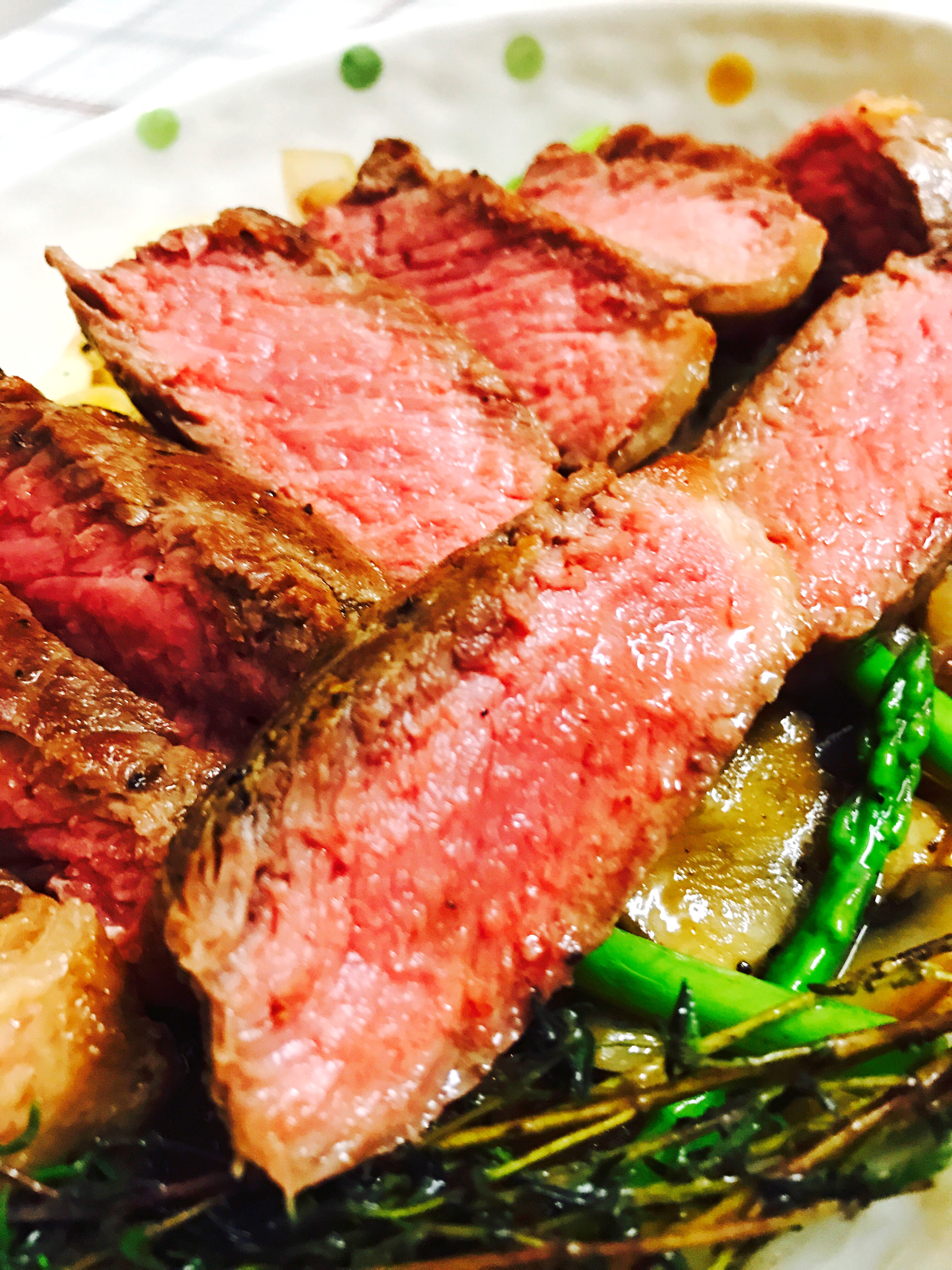 3, Beef fillet in a plate and rest for a while. Use the same pan to fry mushroom and carrot. When the juice comes out, drizzle in a little red wine. (I just want to add a little flavor, if you don’t have red wine, you can just skip this step.) Add in a little dried thyme. Turn to low heat and simmer for a little while. Season with salt.
