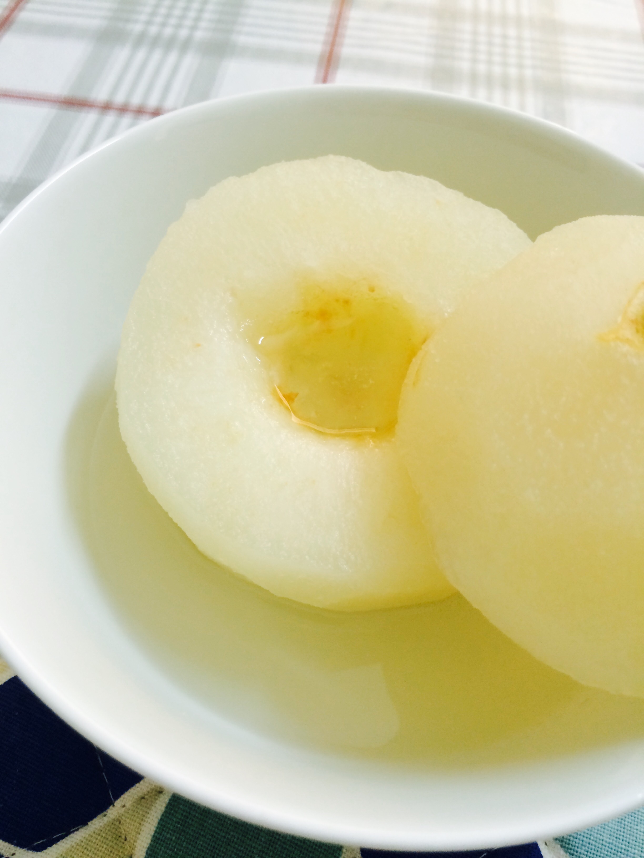1, Add sugar into a sauce pan. Pour into 150 ml water. Turn to low heat and stir at the same time till all the sugar dissolves.