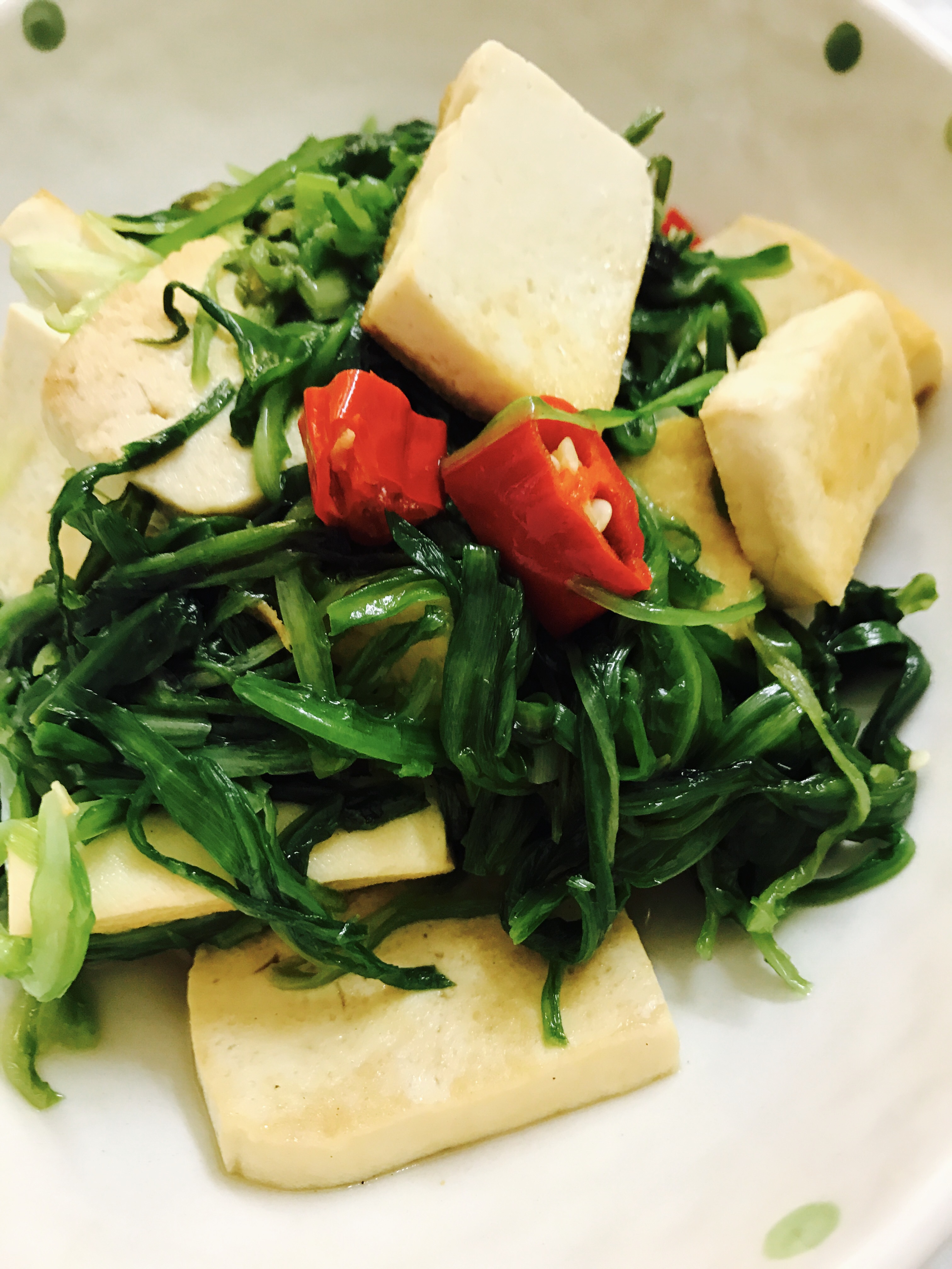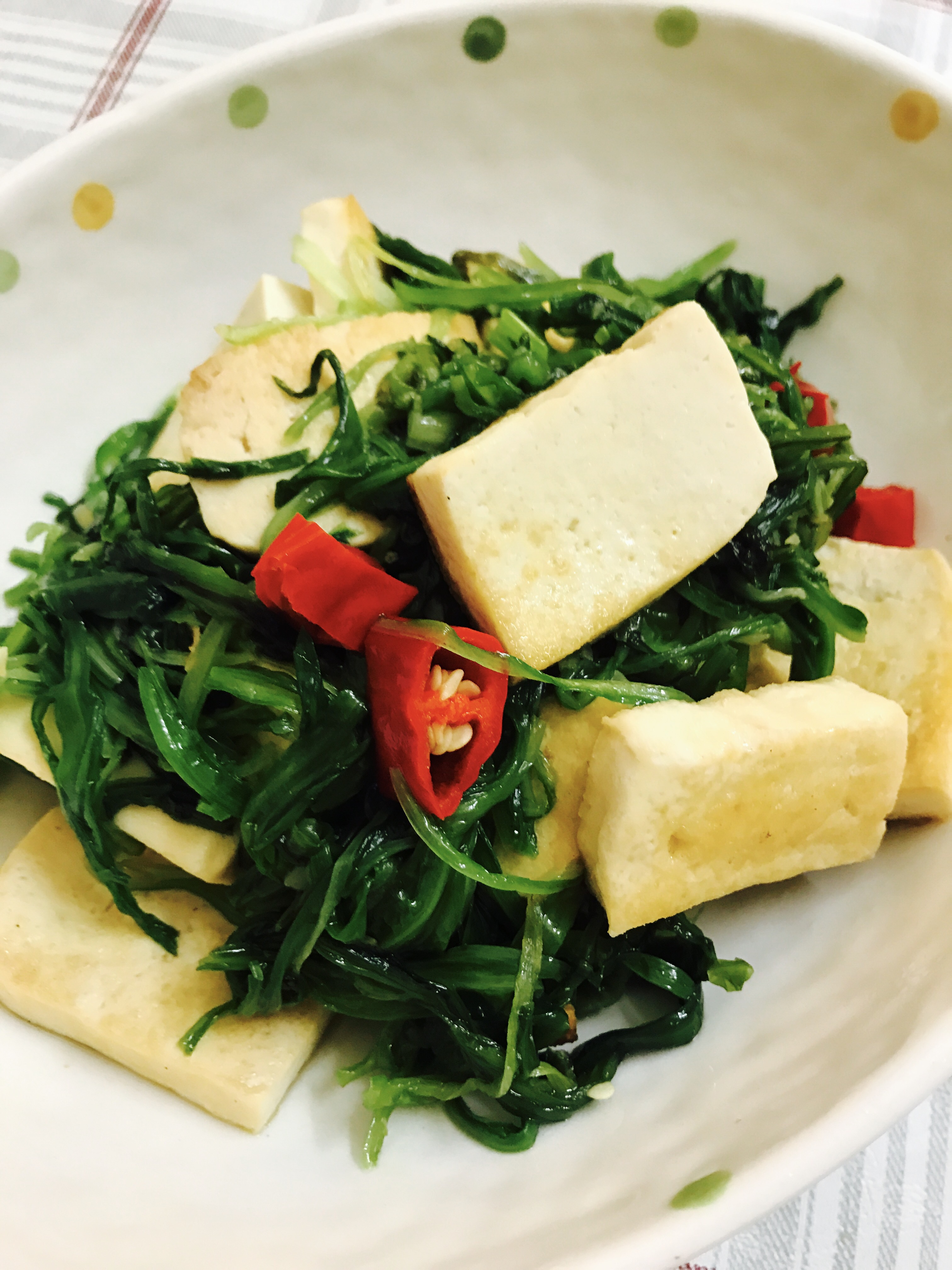 4. Add Tofu back in the pan. Also with chopped chili. Stir fry evenly.